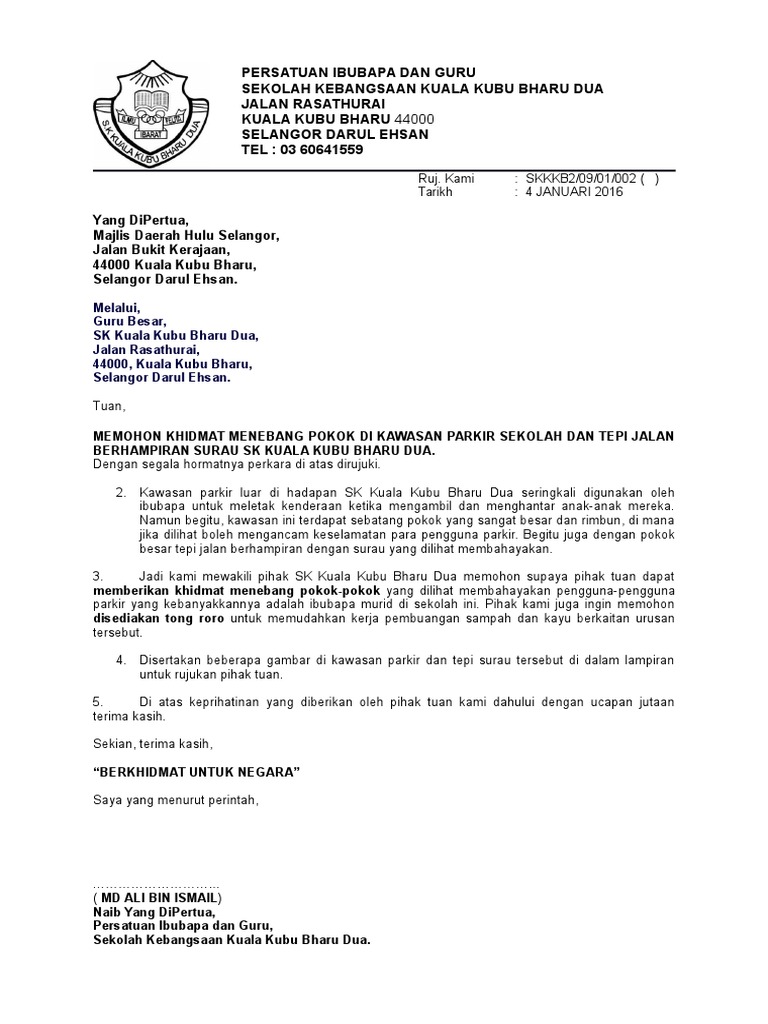 Surat Memohon Khidmat Tebang Pokok 2016 Pdf